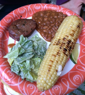 Since we’ve all been having a fairly busy summer, there wasn’t as much planning and prep that went into the trip. My brothers usually bust out some ridiculously elaborate campsite feasts – ones I wouldn’t attempt even in my own kitchen. As mentioned, this year wasn’t any different, but we did simplify things a tiny bit. For instance, we did make more than a few meals on sticks – Team Food on Sticks ™ for the win!! Nothing like meat cooked on a stick over an open fire… Granted, open fires were banned due to an incredibly dry forest, but my brother’s gas fire pit did just as good a job. (Legally, thank you.) It didn’t put out quite the same heat as a campfire, but it certainly did justice to those wily hotdogs… Mmmmm… Food on sticks!